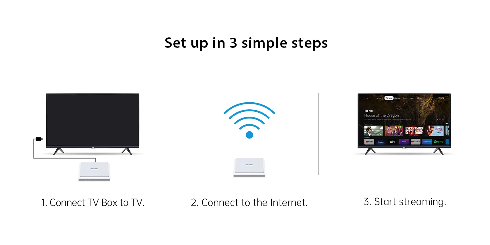 Fonctionnant sous Android TV 11, il propose une interface simple, rapide et entièrement optimisée avec accès officiel à Netflix 4K, Disney+, Prime Video, YouTube et toutes les applications certifiées Google. Avec 4 Go de RAM DDR4 et 32 Go de stockage eMMC, ce modèle assure une exécution fluide des applications, un multitâche performant et un espace suffisant pour installer vos contenus.
