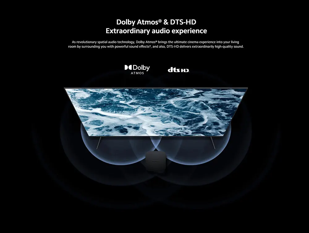 Équipée de 2 Go de RAM et 8 Go de stockage eMMC, la Mi TV Box S permet d’installer vos applications essentielles tout en assurant une navigation rapide. La présence de Chromecast intégré facilite la diffusion de contenus depuis un smartphone ou un ordinateur. Grâce à Google Assistant, disponible en plusieurs langues dont le français, l’anglais, l’espagnol et d’autres, vous pouvez contrôler votre TV, rechercher du contenu ou gérer vos appareils connectés simplement à la voix.